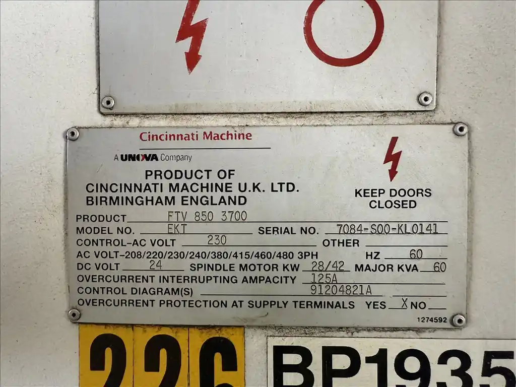 or email scott@perfectionglobal.com Cincinnati Milacron FTV850-3700 Traveling Column Vertical Machining Center