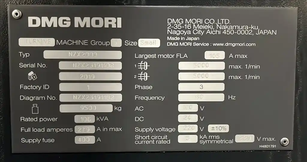 This 2019 DMG Mori NZX2000/800STY3 is a high-performance CNC multi-axis turning center engineered to consolidate turning, milling, and drilling operations into one setup. Its dual spindles and Y-axis equipped turrets enable multi-process machining that saves time and ensures consistent part quality.