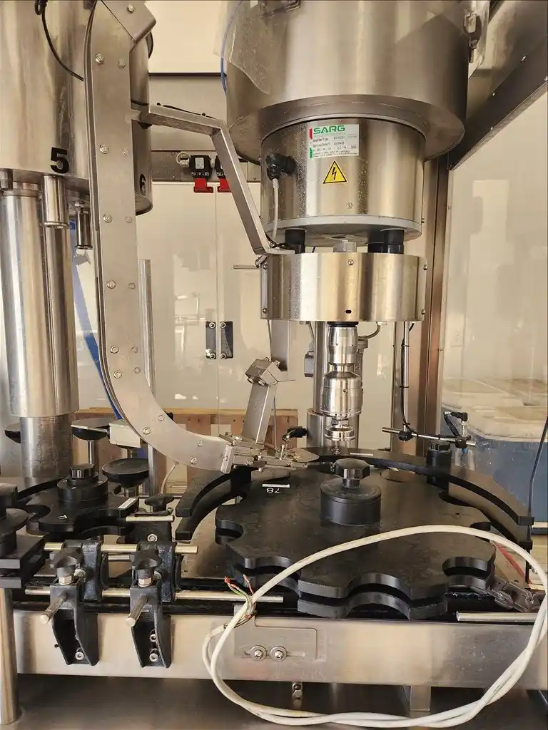 This Newmapak BabyBloc is a compact 3-in-1 monoblock bottle rinser / filler / capper engineered for craft beverage and specialty liquid lines that need automatic, sanitary throughput without the footprint of a full rotary system. With rated speeds up to 1,700 bottles per hour and a handling window of 55 – 115 mm diameter × 170 – 420 mm height, it seamlessly processes most 200 – 750 ml glass or PET formats used in wine, spirits, cold-pressed juice, kombucha, and premium personal-care products. An eight-pincer rinsing turret, gravity/low-pressure fill bowl, precision capping head, and integrated cap elevator keep change-overs quick, while photo-eye jam detection, cap-presence sensing, and stainless wash-down construction meet modern QA and HACCP standards.