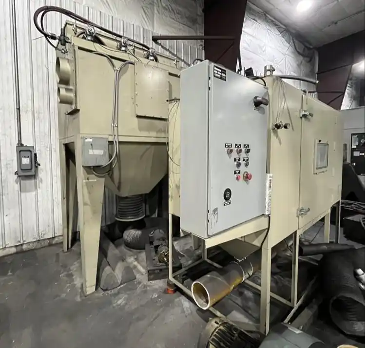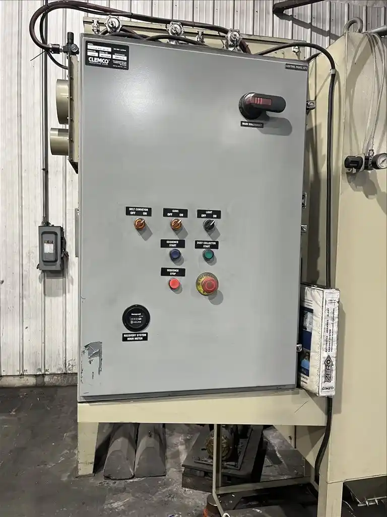 This Zero Blast (Clemco) 24″ pass-thru shot blast system is designed for continuous, automated surface preparation of metal parts up to 24 inches wide. Ideal for descaling, rust removal, and surface profiling, this system features a belt-style material handling conveyor for uninterrupted part flow, making it well-suited for production environments focused on throughput and consistency. The enclosed blast cabinet is engineered for efficiency and operator safety, while Clemco’s long-standing reputation supports reliable performance in industrial applications.